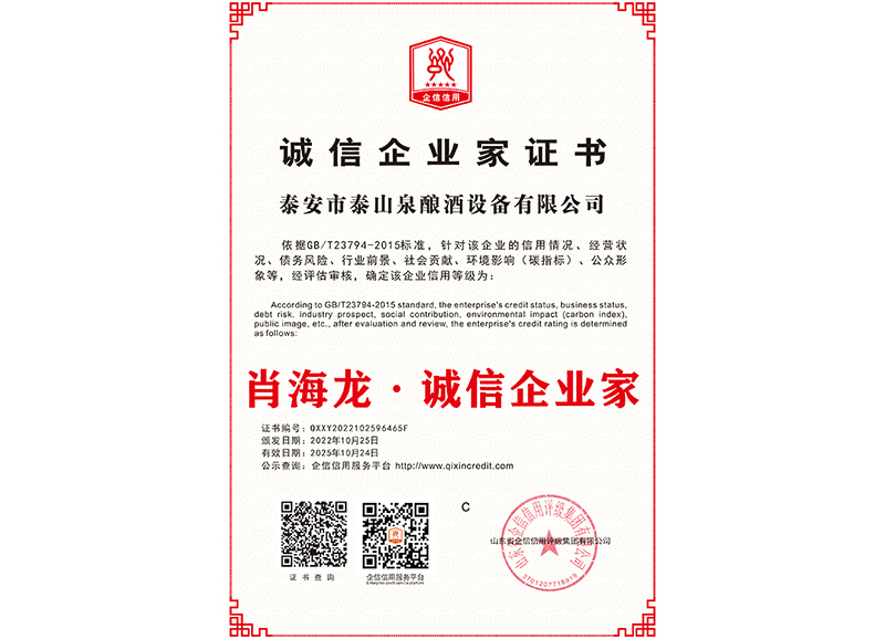 泰安市泰山泉釀酒設(shè)備有限公司,是一家專(zhuān)業(yè)從事釀酒設(shè)備機(jī)械化研發(fā)并集技術(shù)咨詢(xún),工程設(shè)計(jì),制造安裝,人員培訓(xùn)及售后服務(wù)為一體的綜合性企業(yè),本公司主要產(chǎn)品為:大曲清香、小曲清香、大曲醬香、大曲濃香等香型白酒機(jī)械化設(shè)備?! ”竟九c中國(guó)科學(xué)院自動(dòng)化研究所簽訂技術(shù)服務(wù)合同,引進(jìn)先進(jìn)技術(shù),研究生產(chǎn)全自動(dòng)化機(jī)械釀酒設(shè)備,由中國(guó)科學(xué)自動(dòng)化研究所的技術(shù)支持,打造最先進(jìn)的生產(chǎn)釀酒設(shè)備,公司有信心打造全國(guó)最先進(jìn)白酒...